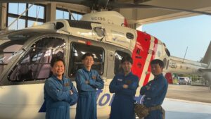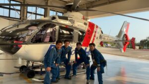 蒲郡市民病院から1か月当科に研修に来てくれている棚橋風太先生が、ドクヘリ同乗実習最終日を迎え、待機終了後に記念写真を撮りました(1枚目の右から2番目が棚橋先生です)。
