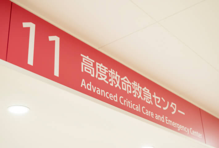 救急車、ドクターカー、ドクターヘリからの重症患者は救命救急科医師により治療が開始されます。外傷患者などではERにある外傷治療室で大動脈クランプ、ガーゼパッキングなどの処置が救命救急科医師により行われます。